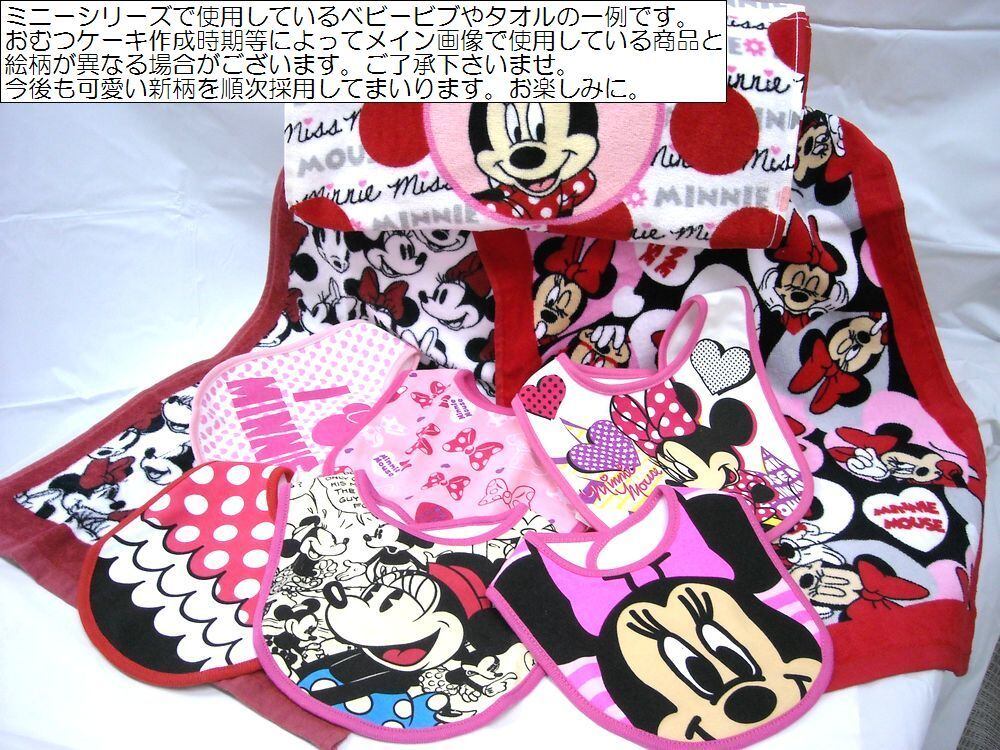 女の子用に喜ばれる、ミニーちゃんです。ベビービブとフェイスタオル、ハンドタオル、ベビーソックスにベビー玩具が付いた豪華版です。 シーズンや作成時期により、使用するお花や付属品などが多少変わる事もございますが、全体のイメージが大きく変わることはございません。