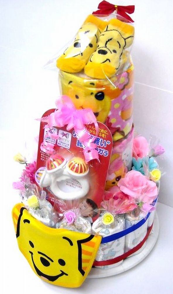 出産祝い オムツケーキ 豪華な3段おむつケーキ ディズニー3R 男女共用、くまのプーさん