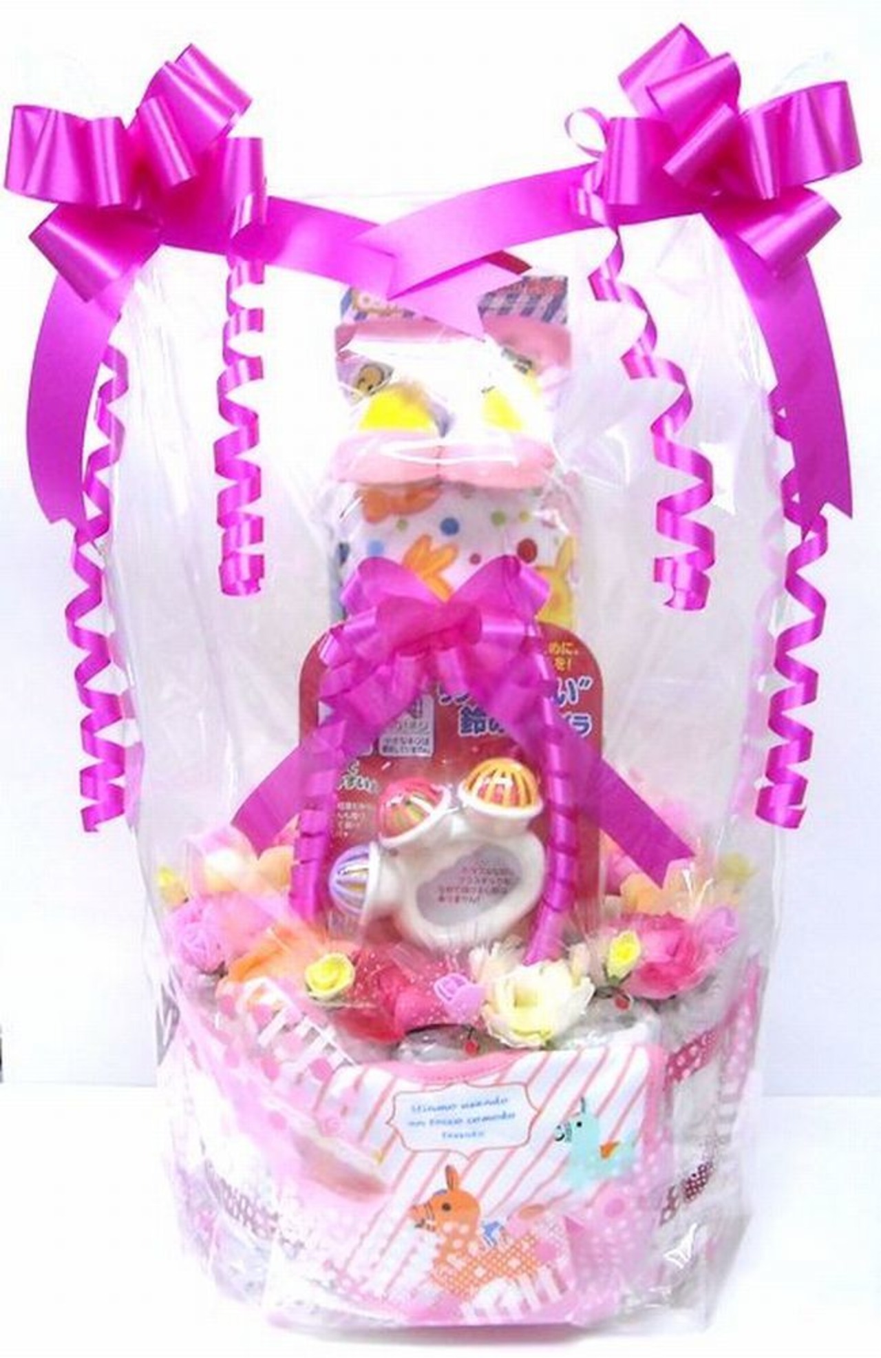 出産祝い オムツケーキ 3段おむつケーキ ロディ3R 女の子用ピンクリボン
